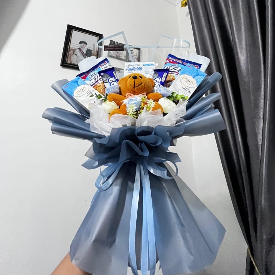 Free untuk pilih warna,Free kartu ucapan,boleh custom jajan harganya dapat berubah, untuk bunga dan bonekanya juga boleh custom
